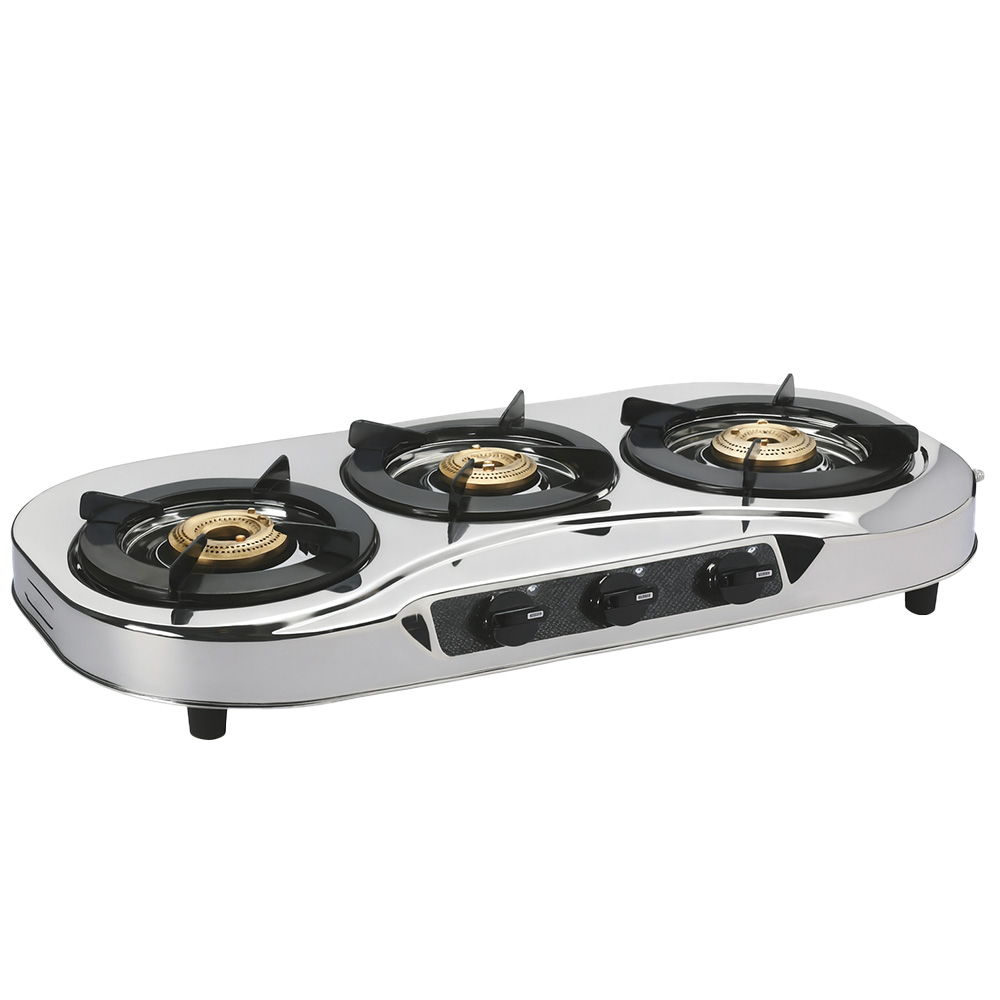 The 3B Sleek SS0302 is a thoughtfully engineered three-burner stainless steel gas cooktop built to meet modern cooking demands with style and efficiency. With its mirror-finish, rust-proof heavy gauge stainless steel body, it not only looks elegant in any kitchen but also provides long-lasting durability. The widely spaced burners include a jumbo, medium and small size configuration—ensuring you can accommodate large vessels alongside everyday pots without crowding. Robust brass burners and precision gas valves combine to deliver reliable heat distribution and performance.